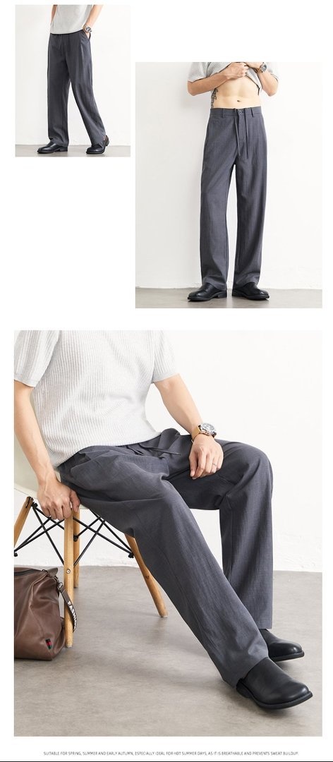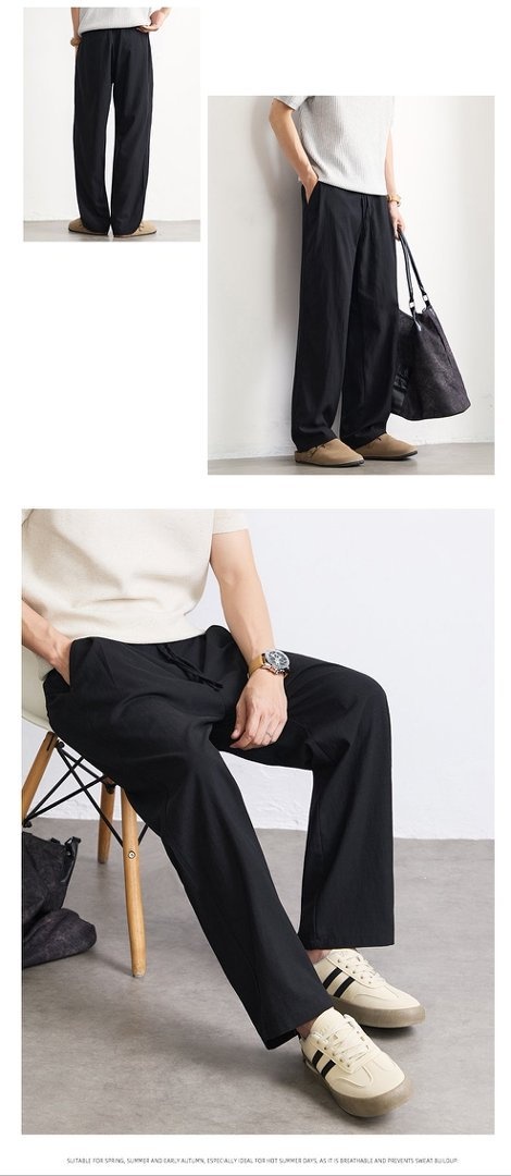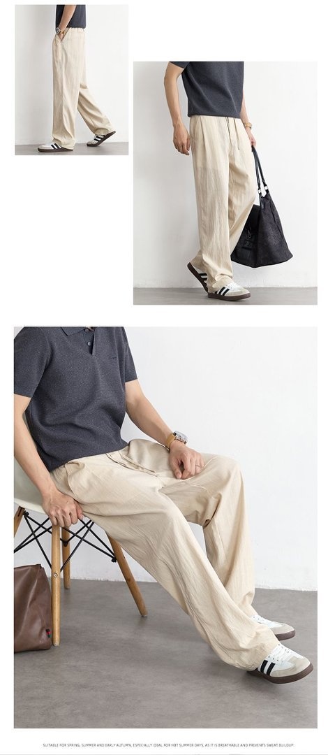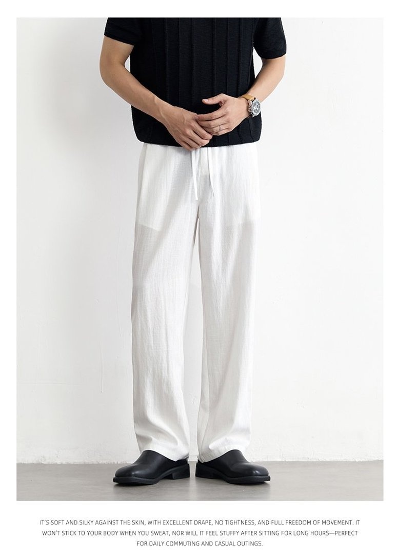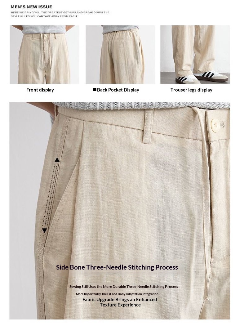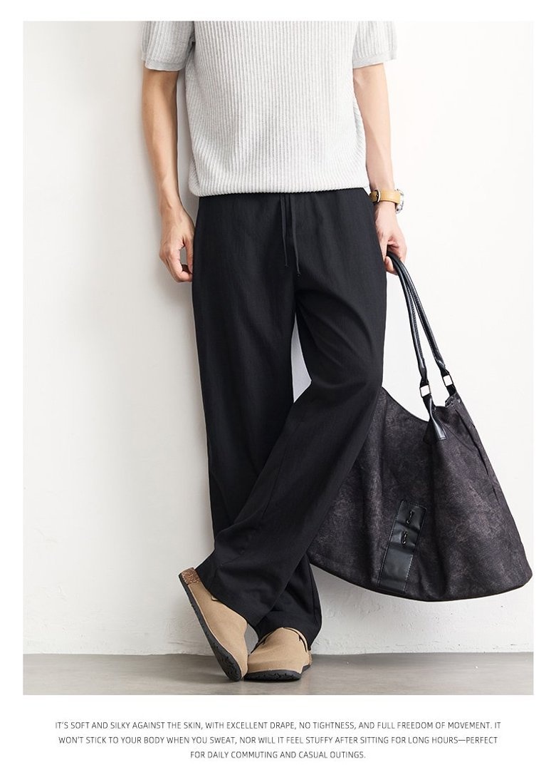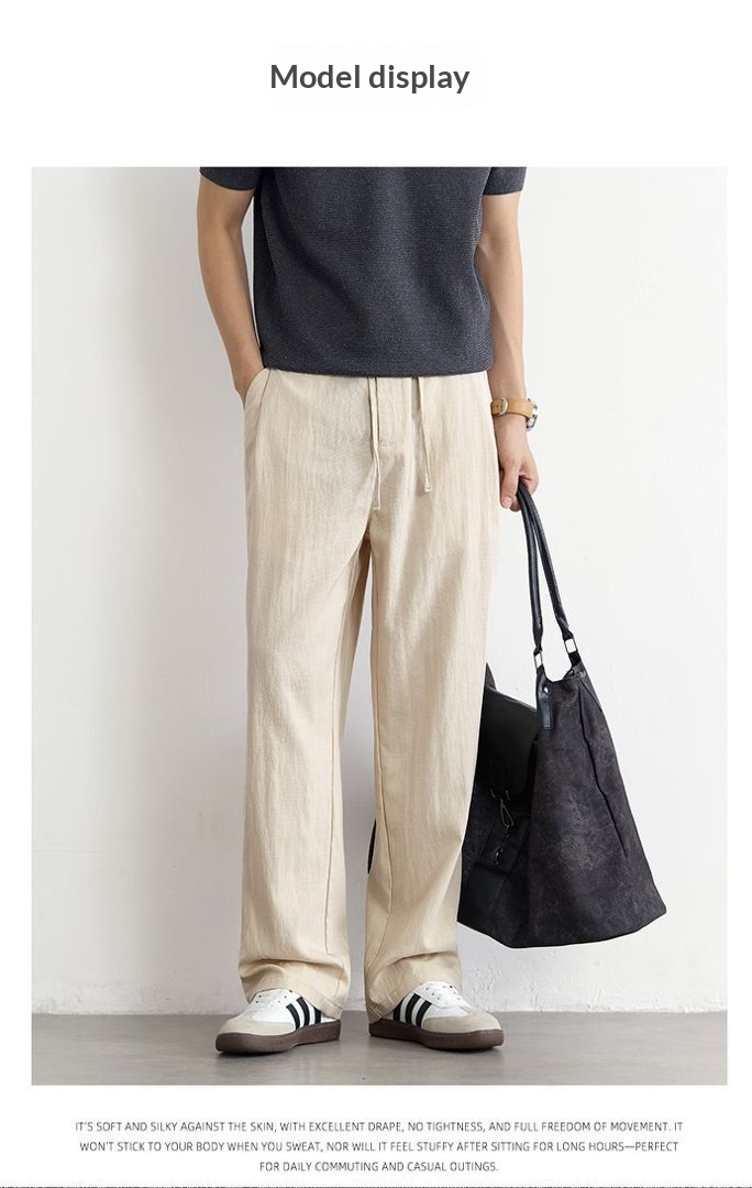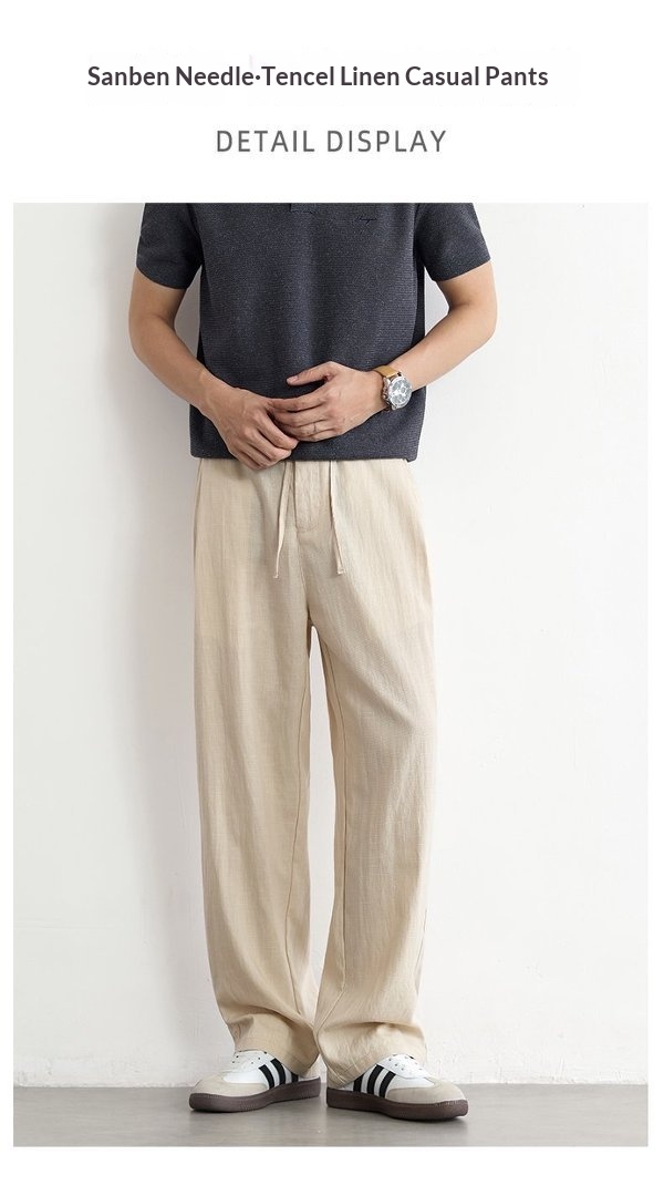 Tencel Linen Wrinkle-resistant Loose-fitting Straight-leg Breathable Casual Pants