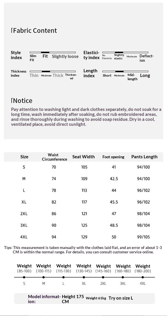 Sizes: S (45–52.5 kg), M (52.5–60 kg), L (60–67.5 kg), XL (67.5–75 kg), 2XL (75–82.5 kg), 3XL (82.5–90 kg), 4XL (90–97.5 kg)