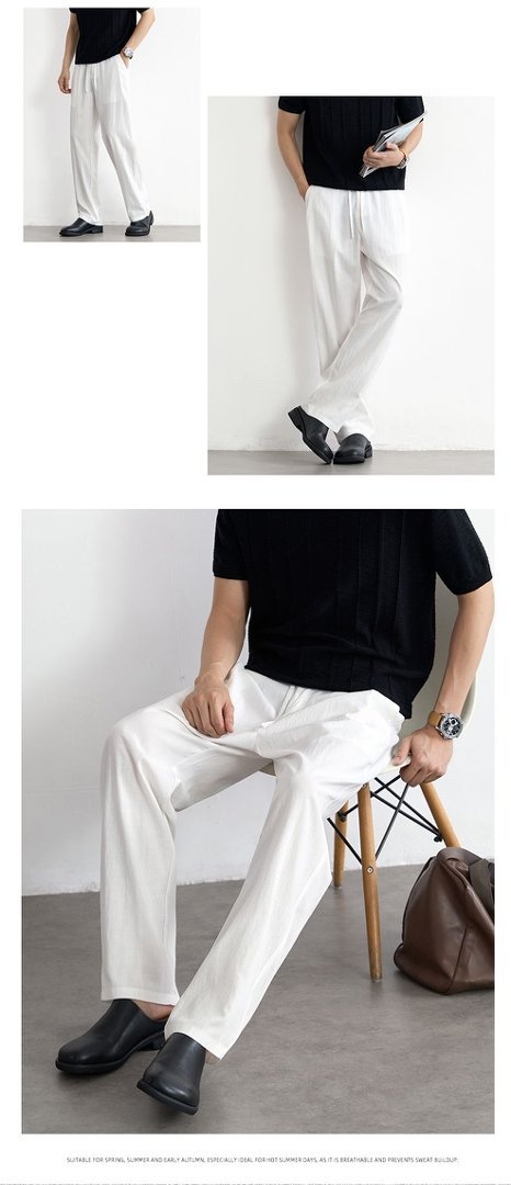 Colors: Gray Pants (8209 Half-Drawstring Waist), White Pants (8209 Half-Drawstring Waist), Black Pants (8209 Half-Drawstring Waist), Natural Linen Pants (8209 Half-Drawstring Waist), White Pants (8208 Full-Drawstring Waist), Black Pants (8208 Full-Drawstring Waist), Navy Blue Pants (8208 Full-Drawstring Waist), Natural Linen Pants (8208 Full-Drawstring Waist), Gray Pants (8208 Full-Drawstring Waist)